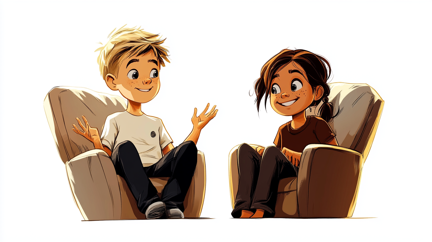 An einem sonnigen Mittwochnachmittag sitzen Tom und Hanna am Küchentisch. Hanna malt ein Bild für ihre Freundin Emma, während Tom versucht, mit Bauklötzen einen Leuchtturm zu bauen. Da kommt Mama mit einem ruhigen Lächeln in die Küche.