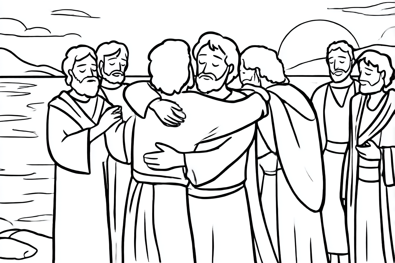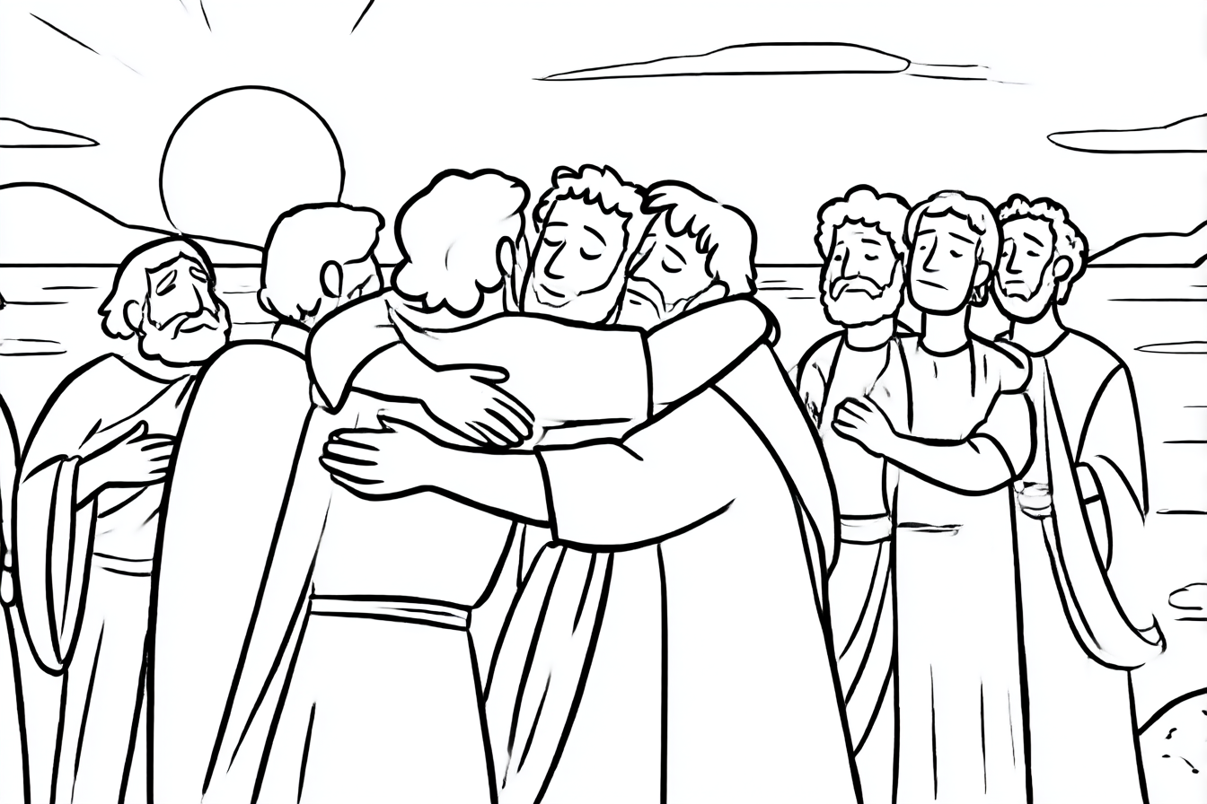 Paulus kniete sich hin. Alle anderen auch. Sie beteten zusammen. Dann nahmen sie Abschied. Sie umarmten Paulus ganz fest, als könnten sie ihn nie wieder loslassen.